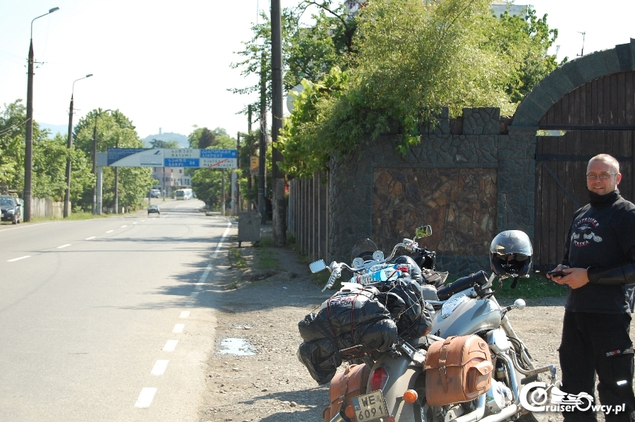 12 czerwca znowu trochę zaspaliśmy. Zeszło się do późnego popołudnia zanim się zebraliśmy. I tak nie da się jechać. Wygląda na to, że Yamaha Tommy’ego nie ma już klocków. Przynajmniej z tyłu. Autoryzowany serwis Yamahy w Warszawie zapewnił że klocki są ok. i że spokojnie można jechać następne 10 tys.km. Trochę usprawiedliwia ich fakt, że mało kto zdaje sobie sprawę co to jest Kaukaz dla ciężkiego motocykla typu cruiser. A zresztą kto przy zdrowych zmysłach jedzie na cruiserze na Elbrusa, Bałkarię, drogę wojenną w Gruzji i jeszcze pcha się na koniec świata do Swanetii?